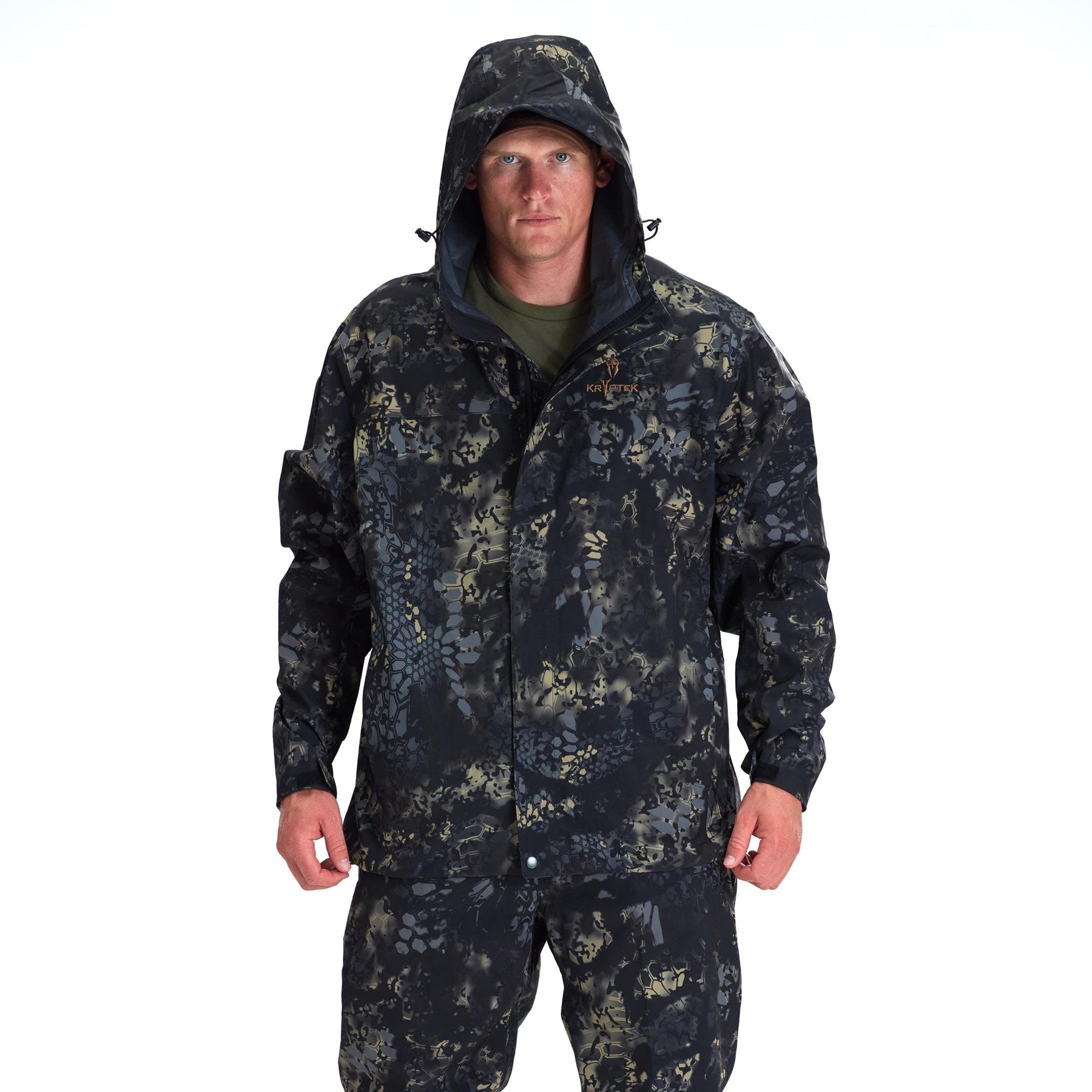 The Kryptek Jupiter Jacket is your first line of defense against sudden downpours and rugged weather. Designed with a 2-layer laminated shell (155 g/m² PL/EA) and rated 10k/10k waterproof/breathability, this lightweight rain jacket delivers serious protection while keeping you mobile. With fully taped seams, pit zips, and adjustable hood, hem, and cuffs, it's built to seal out the elements without trapping in heat. Whether you're stalking in wet brush or hiking under ominous skies, Jupiter’s got you covered.