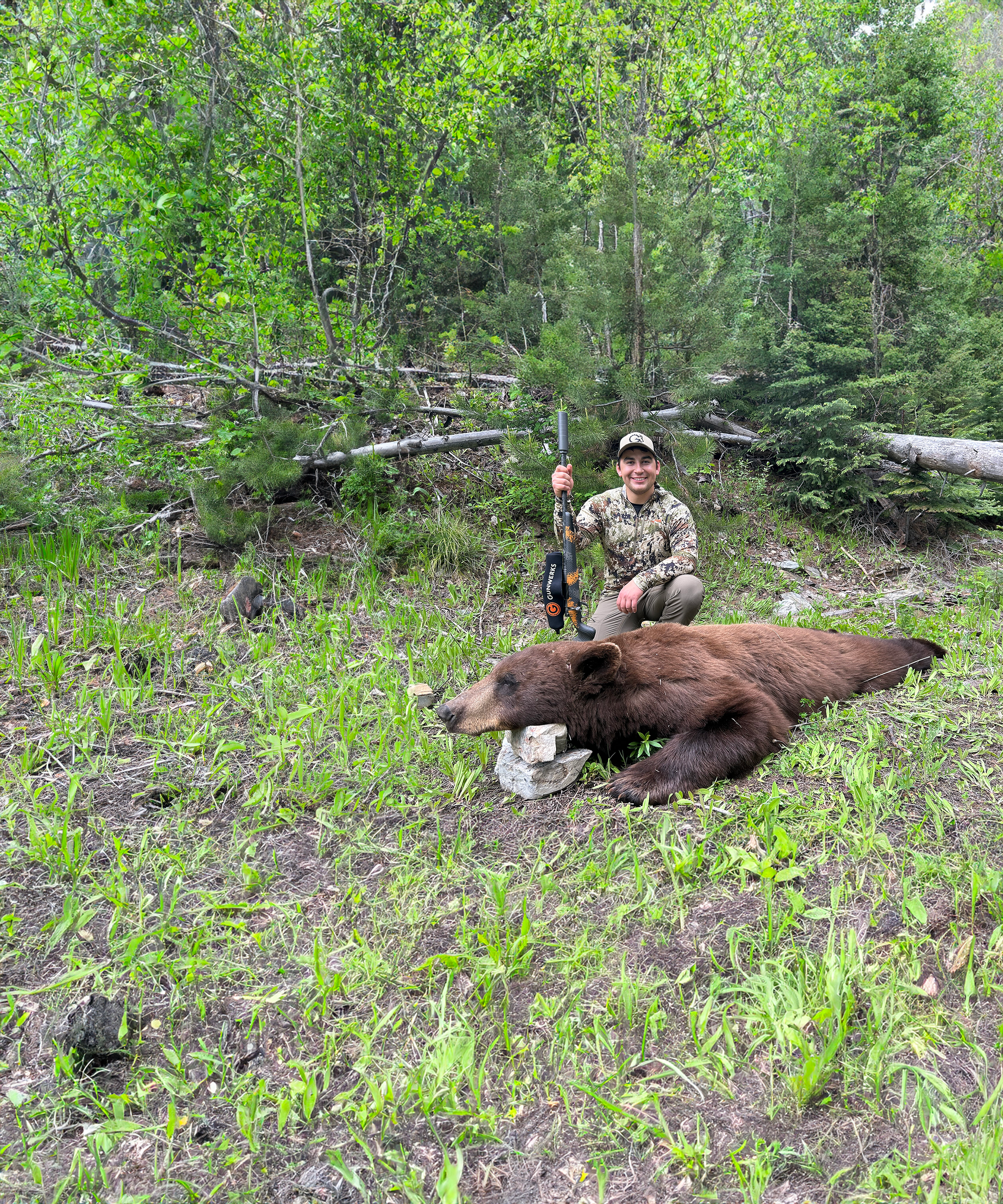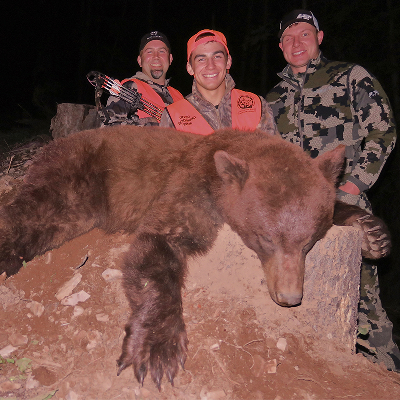 ...and I’m not physically riding the bike while shooting these bears, but I would definitely recommend adding a bike to your gear list for a black bear hunt where you know there are going to be a lot of logging roads. A cheap pedal bike can help you punch a lot deeper past a Forest Service gate than you could on foot, and the ride back out can be really, really fun (if you’re going downhill, anyways). Outside of that unique exception, my gear list for spring bear always includes quickly accessible rain gear, due to the unpredictability of May-June weather, and then a good pair of gaiters, primarily for mitigating ticks. Ticks are, unfortunately, the only downside to my absolute favorite hunt of the year; however, specific gear like SITKA’s Equinox line (designed to keep out bugs) can help combat the persistent critters. (Although nothing will ever be quite as effective, or as comical, as standing in the entryway of your own home, in your skivvies, calling for someone to come search you for bloodsucking parasites.)